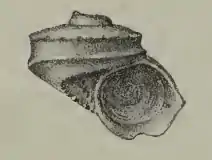 The height of this minute shell attains 0.75 mm and its diameter 0.50 mm. The delicate, white-gray shell has a depressed trochoidal shape and is deeply umbilicate. it contains 4 whorls. The nuclear whorls are slightly nepionic, and shapelessly turgid, but the penultimate and body whorl are very well sculptured and defined, being acutely spirally bicarinate. The aperture is round. The peristome is continuous. It is slightly thickened at the base around the umbilicus. Around the umbilicus, likewise, a third keel, crenulate, and not so acute, revolves. The dark red-brown operculum is multispiral with a not quite central nucleus. A pale straw-coloured epidermis covers the whole surface uniformly.[3]