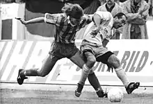 ![]() Munever Krajišnik (right) with Frank Edmond (left) during a football match in 1990 | |||