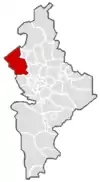 Outside the Monterrey Metropolitan Area, the state is sparsely populated. The largest municipality by population is Monterrey, with 1,142,994 residents (19.75% of the state's total), while the smallest is Parás with 906 residents.[1] The largest municipality by land area is Galeana which spans 7,068.30 km2 (2,729.09 sq mi), and the smallest is Abasolo, with 46.90 km2 (18.11 sq mi).[2] The newest municipality is Melchor Ocampo, established in 1948.[6]