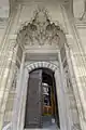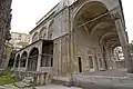 The Muradiye Mosque in Manisa was built between 1583 and 1586 for the Ottoman sultan Murad III.[1] It replaced an earlier small mosque on the site that had been began in 1571 when prince Murad had been governor of Manisa. The sultanic mosque was designed by Mimar Sinan but built by the architect Mahmud Halife until his death and then from January 1586 by the architect Sedefkar Mehmed Aga who would later design the Sultan Ahmed Mosque in Istanbul.[2] As well as tiled revetments some of the stonework was decorated by a team of painters sent from the capital.[3] In 1584 the sultan ordered 150 Murano oil lamps from Venice. These were probably intended for the mosque.[4] The associated madrasa and guest-house were not completed until after 1590.[5] Neither Sinan nor Murad III visited Manisa to inspect the mosque after its completion.[6]