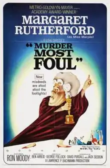 Murder Most Foul British is the third of four Miss Marple films made by Metro-Goldwyn-Mayer.[1] Loosely based on the 1952 novel Mrs McGinty's Dead by Agatha Christie, it stars Margaret Rutherford as Miss Jane Marple, Charles Tingwell as Inspector Craddock, and Stringer Davis (Rutherford's real-life husband) as Mr Stringer.[2] The story is ostensibly based on Christie's novel, but notably changes the action and the characters. Hercule Poirot is replaced by Miss Marple and most of the other characters are not in the novel.[3]