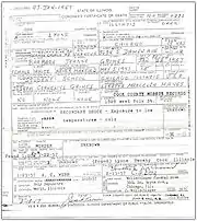 | Resting place | Holy Sepulchre Cemetery, Alsip, Illinois, U.S. 41.6869°N 87.7690°W (approximate) |