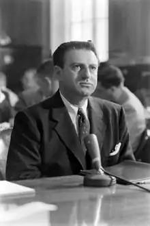 Chotiner served as counsel to state committees investigating violence in motion picture strikes and conditions in children's boarding homes and in homes for the elderly.[13] In 1944, Chotiner was elected president of the conservative California Republican Assembly, a grassroots organization of party activists;[14] he had previously served as president of the Los Angeles Republican Assembly.[15] In addition to his political involvement, he was active in the Los Angeles Jewish Community Relations Committee.[2]