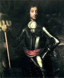 Charles II was at this time in Holland, and Inchiquin was called upon to defend himself against many charges brought by Sir Lewis Dyve, but soon withdrawn as without foundation.[66] Charles investigated the matter at Paris after his escape from Worcester, and on 2 April 1652 wrote himself to Inchiquin to declare his confidence in him.[67] On 11 May he was made one of the royal council, "of whose company," Edward Hyde wrote, "I am glad; who is, in truth, a gallant gentleman of good parts and great industry, and a temper fit to struggle with the affairs on all sides that we are to contend with".[68] But neither the Queenmother Henrietta Maria, Jermyn, nor Wilmot, Earl of Rochester liked the new appointment. In 1653 Inchiquin sought the command of all Irish soldiers in France; but this was opposed by the Irish clergy, who told the nuncio that he was a "murderer of priests, friars, and such like";[69] but he had either one or two regiments under him.[70] In May 1654 he received the earldom which he had spurned ten years before.[71] At this time the exiled king's council consisted of eleven persons, divided into two parties. The majority consisted of Ormonde, Rochester, Percy, Inchiquin, Taafe, and Hyde, who controlled the whole policy. Henrietta Maria, the Duke of York, Rupert, the Duke of Buckingham, and Jermyn were the minority.[72]