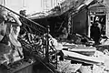 There were also plans to evacuate the rest of the works in the collection. The artworks were unframed, rolled and crated but a lack of manpower and transport prevented their being moved and some of them were damaged in a three hour bombing raid on 31 March 1941 against three German heavy cruisers then in harbour at Brest. Full evacuation of the museum was planned for 9 July the same year but on the night of 4–5 July another British raid against the cruisers completely destroyed the museum. The rubble was pillaged, leading to the "Dépêche de Brest" on 12 July demanding that the city's inhabitants return objects stolen from the museum's ruins.[4] Only a few objects such as counters, iron weapons and bronze cannon were recovered as the rubble was cleared. The city library moved to the ground floor of the école professionnelle des filles on rue Danton before moving into two classrooms at the école maternelle Bugeaud.