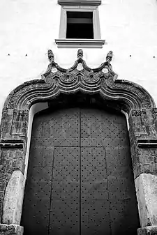 The façade features a Catalan Gothic portal and Renaissance elements; inside, the main courtyard boasts a monumental open staircase.[5]