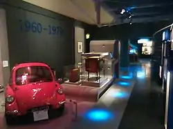 Lifetimes opened in March 1995.[12] It set out to tell the story of Croydon and its people from 1840 to the present (and into the future), with the main emphasis being on the period from 1939 onwards. Exhibits were mainly borrowed from local residents; much information was drawn from oral history interviews; and there were no glass cases or labels (interpretation and explanation being supplied entirely through multimedia computer terminals). In a token acknowledgement of the borough's earlier history, an entrance sculpture was commissioned tracing Croydon's story back to the Big Bang.[13]