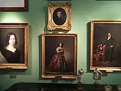 Some of the landmark items exhibited at the museum include painting works by Francisco de Goya (San Gregorio Magno), Leonardo Alenza (Satira del suicidio romántico, Sátira del suicidio por amor and El dios grande), Valeriano Domínguez Bécquer (El conspirador carlista), Antonio Carnicero (Retrato de Godoy), José Aparicio (Desembarco de Fernando VII), Joaquín Espalter (La familia Flaquer), Vicente López Portaña (Retrato del Marqués de Remisa), Antonio María Esquivel (El general Prim a caballo and Retrato de Alfredito Romea), Eugenio Lucas Velázquez (Cueva de bandidos), Charles Porion (Isabel II pasando revista a las tropas), Federico de Madrazo y Kuntz (Retrato del Duque de Rivas, Retrato de la Duquesa de Rivas, and Retrato de Julián Romea), José de Madrazo (Retrato de Fernando VII a caballo), Jenaro Pérez Villaamil (Puerta de Serranos en Valencia), Joaquín Sorolla (Retrato del Marqués de la Vega-Inclán), Manuel Cabral Bejarano (La copla), José Gutiérrez de la Vega (Retrato de Isabel II and Retrato de Larra) and Francisco de Zurbarán (San Francisco).[4]