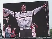 ![]() Swedish musician Dennis Lyxzen, performing at Le Pub | |