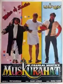 Muskurahat (transl. Smile) is a 1992 Indian Hindi-language comedy-drama film directed by Priyadarshan, starring Jay Mehta, Revathi, Amrish Puri, Anil Dhawan, Sharat Saxena, Annu Kapoor and Jagdeep. It is a remake of Priyadarshan's own Malayalam film Kilukkam [1] which was reported to have been inspired by the 1953 movie Roman Holiday.[1][2] It was initially supposed to star Aamir Khan and Pooja Bhatt.[3]