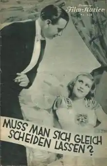 Must We Get Divorced? (German: Muß man sich gleich scheiden lassen) is a 1933 German comedy film directed by Hans Behrendt and starring Else Elster, Aribert Mog and Iván Petrovich.[1]