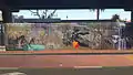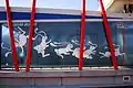 In 2007 Cape Town began its work on the MyCiTi Integrated Rapid Transit (IRT) system to improve public transport in the city. The plan enforces an integration between modes of public transportation since both rail and bus routes are used by thousands on their daily commute. The work includes improvements in infrastructure, business development, and operations. In October 2010 the IRT project began to seek artists and designers to create artworks on thirteen of the new MyCiTi bus stations. The plan called for artwork to be presented on the glass panels at the entrance of the stations.[1] Six of the thirteen stations were commissioned to an artist collective called Black hat and Nimbus. Black hat and Nimbus are a collaborative group composed of Mark Henning and Hannah Williams, two graphic designers who have worked together on both public and private creative projects. Other artists involved in the project included Julia Anastasopoulos for Civic Centre mural, Hannes Bernard (Paarden Island), Arlene Amaler-Raviv (Neptune street), David Hlongwane (Section street), Sanjin Muftic (Brooklyn), Tony Coetzee (Zoarvlei) and Alan Munro (Bayside). [2]