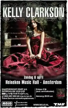 The tour was to be sponsored by Vitamin Water.[6] The company set up an exclusive website, kellyallaccess.com, which offered a pre-sale through Ticketmaster as well as other cross-promotional activities with Clarkson.[7] Tickets went on sale on May 12 and prospects for the tour got caught up in Clarkson's very public career drama concerning the contents and commercial potential of My December, her relations with record company boss Clive Davis, and her falling out with her own management.[8][9][10]