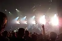 The show's set list was dominated by My December and Breakaway material, with only "Miss Independent" and "Beautiful Disaster" appearing from her first album Thankful and the only indicator of her American Idol heritage her introduction to the Idol Gives Back showstopper "Up to the Mountain".[22][23] Clarkson's concert audience in the U.S. was sometimes composed of high school and younger college age people, predominantly female, and preteen girls accompanied by one or both parents, but also sometimes connected with her radio audience, which includes widespread play on adult contemporary stations.[24] The music presented in the show was more conventionally rock-oriented than her concert audience profile might indicate. Clarkson's between-songs stage patter typically made only a few allusions to her career adventures with the My December album.[24] At the start of the tour, she introduced My December material carefully. Near the close of shows, she thanked the audience for giving this chance to her to perform her songs, saying that all the other facets of the music industry paled in importance. She gave more extensive introductions for "Hole" and "Up to the Mountain",[24] which she said did not fit her normal sound.