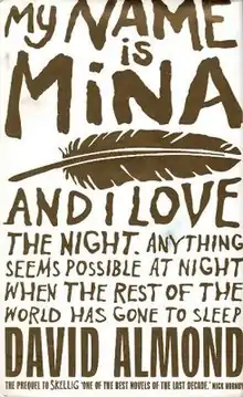 My Name Is Mina is a 2010 children's novel by David Almond. It is a prequel to Skellig and is about Mina, a homeschooled girl who lives across the road from the house that Michael's family moves into at the beginning of Skellig. The novel takes the form of a stream of consciousness journal. It is written in a way that shows us Mina's opinions.