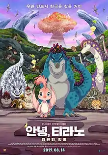 My Tyrano: Together, Forever (Japanese: さよなら、ティラノ, Hepburn: Sayonara, Tyranno) is a 2018 Japanese–Korean animated film directed by Kōbun Shizuno. A joint production between South Korea, Japan and China, it is based on the 11th book in Tatsuya Miyanishi's Tyrannosaurus series. It depicts the friendship of a lonely Tyrannosaurus rex (OKA Ceratosaurus), Tyrano, and an orphaned baby dinosaur Punon as they begin their journey in search for an earthly paradise. It made its world premiere in the Open Cinema section at the 23rd Busan International Film Festival. The scoring of the film is by the prominent Japanese musician Ryuichi Sakamoto.[3][4][5]
