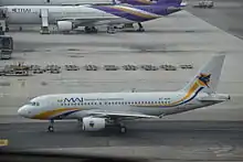 MAI inherited a long history of government ownership when it was separated from Myanmar National Airlines in 1993. The new airline was initially formed as a joint venture company between Myanma Airways and a Singapore investment company. Just prior to the 2010 General Election, Myanmar's government sold an 80% stake in MAI to one of the country's largest financial institutions, Kanbawza Bank Ltd, retaining a 20% stake through the state-owned domestic carrier, Myanma Airways. In 2009 MAI received delivery of its first two aircraft with the remainder of the carrier's short-haul fleet being leased from neighboring countries. Operations radically change from 2010 under KBZ Bank's ownership with organizational and route adjustments. As well as fully commercializing the airline's operations, the carrier's controlling parent also launched a domestic partner airline, Air KBZ in June 2010.[3] Since then, MAI has been expanding its fleet and currently has a total of five Airbus A320s and two Airbus A319s in its service. It also leased Airbus A321s from Air Méditerranée in the winter of 2010-2011 and deployed them on Bangkok-Singapore services. Non-hub routes between Bangkok-Singapore and Siem Reap-Phnom Penh were successfully inaugurated in 2010 and 2011 respectively. In 2013, MAI received IOSA certificate, the only recipient in Myanmar of the IATA Operational Safety Audit Program (IOSA) Operator. In 2016, Kanbawza (KBZ) Group acquired full control of MAI. In 2018 the airline commenced services between Mandalay-Bangkok.[4]