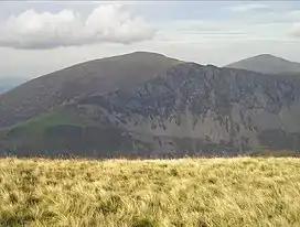 Mynydd Mawr (Welsh for big mountain) is a mountain in Snowdonia, North Wales, approximately 7 km (4.3 mi) west of Snowdon itself, overlooking Llyn Cwellyn and being the northern outlier of the Moel Hebog group. A popular ascent starts from Rhyd Ddu. On its western flank are the remains of ancient settlements and field systems. The profile of Mynydd Mawr from the north is often thought to resemble an elephant lying down, and consequently the mountain is often colloquially also called "Yr Eliffant" ('The Elephant'), or "Elephant Mountain" by non-Welsh speakers.[1]
