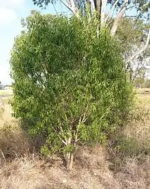 - Desert form, from arid areas of Australia is a large shrub or small tree which has thick, elliptic leaves and flowers prominently spotted purplish red;
