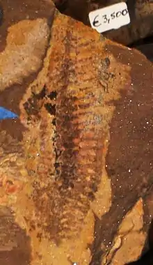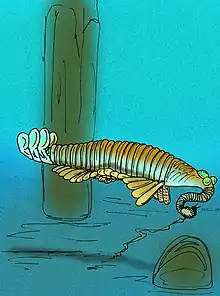 Myoscolex is an early animal species known from the Cambrian Emu Bay Shale in South Australia. Originally interpreted as an annelid, it seems to be an arthropod; the possible presence of an Opabinia-like proboscis, eyes, and flaps suggests a plausible relationship with that species.[1] Myoscolex is the earliest known example of phosphotized muscle tissue, and as to which shows distinct annulation.
