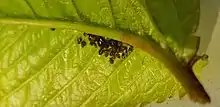 | Colony of Myzus cerasi on a cherry leaf | |