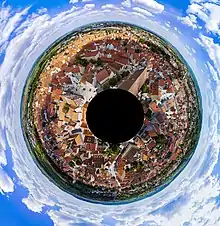 Finds in the Ofnet Caves near the city show that the site of present-day Nördlingen was already inhabited in the late Palaeolithic. In the Large Ofnet, in 1908 archaeologist R. R. Schmidt found two dish-shaped pits in which human skulls were lying "like eggs in flat baskets".[4] In the larger pit were 27 skulls and in the other there were 6 skulls.[5] The skulls were arranged concentrically with their faces turned towards the setting sun.[5] They were all covered with a thick layer of red ochre.[5] The skulls have been dated to the 7th millennium BC.[6] In the area around Nördlingen, additional sites dating to almost all of the subsequent prehistoric epochs have been discovered. Particularly important was an area on the eastern edge of the district Baldingen, where settlements have been found belonging to the Neolithic Linear Pottery culture, the Bronze Age Urnfield culture, and the Celtic Iron Age Hallstatt and La Tène cultures.