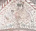 The frescos present various scenes from the Biblia pauperum, including Adam and Eve working surrounded by 14 children, the presentation of Christ in front of Pilate and other scenes from the Pilate, and Marian coronation.[1]
