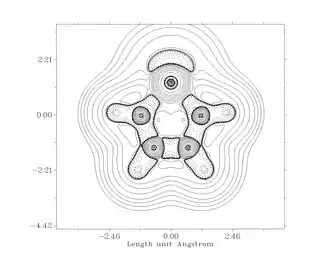 Atoms in Molecules bond energy at critical point calculations show that the N to Si bonds in an NHSi are significantly ionic, unlike the highly covalent N-C bond in an NHC. Furthermore, the charge density and the Laplacian (∇2) at the bond critical points between the silylene and carbene are dissimilar. Silylenes have much lower charge density between Si and N, with a positive Laplacian from Si to N indicating a more ionic interaction, while the Laplacian is negative going from carbon to nitrogen in an NHC indicating a more covalent bond. Upon coordination to a Group 11 metal the covalent character in the Si or C to metal bond is small, but not insignificant, again with a higher covalent character in the carbenic system. Similarly, silicon has a higher Laplacian between it and the group 11 metals than does carbon, indicating a less covalent metal interaction in silyenes as compared to carbenes.[8]
