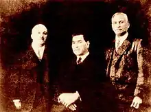 ![]() N.E.B. Ezra (left) with two associates | |