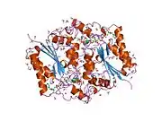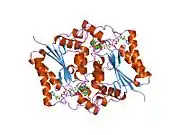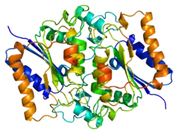 NAD(P)H dehydrogenase, quinone 2, also known as QR2, is a protein that in humans is encoded by the NQO2 gene. It is a phase II detoxification enzyme which can carry out two or four electron reductions of quinones. Its mechanism of reduction is through a ping-pong mechanism involving its FAD cofactor. Initially in a reductive phase NQO2 binds to reduced dihydronicotinamide riboside (NRH) electron donor, and mediates a hydride transfer from NRH to FAD. Then, in an oxidative phase, NQO2 binds to its quinone substrate and reduces the quinone to a dihydroquinone. Besides the two catalytic FAD, NQO2 also has two zinc ions. It is not clear whether the metal has a catalytic role. NQO2 is a paralog of NQO1