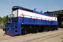 The NASA Railroad formerly operated three SW1500 switcher locomotives, each former Toledo, Peoria and Western Railway units, as well as 75 railroad cars.[7] The fleet is maintained by the NASA Railroad shop, which also maintains locomotives and cars for the Cape Canaveral Space Force Station.[1][8] Upon the railroad's reopening in 2020, the SW1500s were replaced by railcar movers.[9]