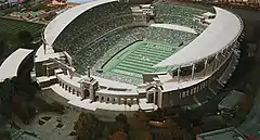 During the two decades, many NFL teams used Los Angeles as a bargaining chip in order to get their cities to build new stadiums in their existing cities.[26][27] Owners expressed interest in relocation and visited Los Angeles to encourage their city councils.[16] By 2015 more than half the league had threatened to move there,[28] during negotiations for new or renovated stadiums, which cost hundreds of millions of dollars,[29][30][31] and 27 NFL stadiums had been built or received at least $400 million in renovations.[29] According to NBC News,