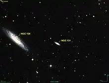 NGC 131 is a spiral galaxy that was discovered on September 25, 1834, by John Herschel. This galaxy belongs in the NGC 134 group of galaxies: NGC 115, NGC 148, NGC 150, PGC 2000 (often confused with IC 1554), IC 1555, and PGC 2044.[3]