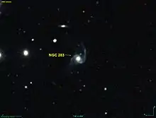 NGC 283 is a spiral galaxy in the constellation Cetus. It was discovered on October 2, 1886 by Francis Leavenworth.[2]