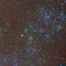 NGC 592 is an H II region type emission nebula located in the Triangulum galaxy (M33) and thus in the constellation of Triangulum.[1][4] The nebula contains an open cluster of stars and is approximately 2.86 million light-years away from Earth.[4][3][2]