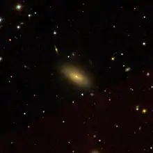 NGC 6056 is a barred lenticular galaxy located about 525 million light-years away[2] in the constellation Hercules.[3] It was discovered by astronomer Lewis Swift on June 8, 1886. It was then rediscovered by Swift on June 8, 1888 and was later listed as IC 1176.[4][5] NGC 6056 is a member of the Hercules Cluster.[6][7]
