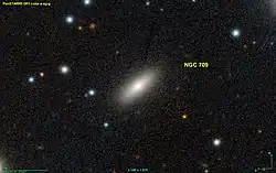 NGC 709 is a lenticular galaxy located 150 million light-years away[2] in the constellation Andromeda. It was discovered by the Irish engineer and astronomer Bindon Blood Stoney on October 28, 1850[3] and is a member of the galaxy cluster Abell 262.[4][5][6][7][8][9]