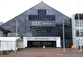 ![]() Facade of the SEC Centre with NHS Louisa Jordan branding in January 2021 | |