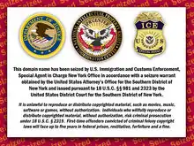 This domain name has been seized by U.S. Immigration and Customs Enforcement, Special Agent in Charge New York Office in accordance with a seizure warrant obtained by the United States Attorney's Office for the Southern District of New York. It is unlawful to reproduce or distribute copyrighted material, such as movies, music, software or games, without authorization. Individuals who willfully reproduce or distribute copyrighted material without authorization, risk criminal prosecution under 18 U.S.C ยง 2319. First-time offenders convicted of criminal felony copyright laws will face up to five years in federal prison, restitution, forfeiture and a fine.[13]