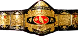 ![]() The current NWA Western States Heavyweight Championship belt, introduced by NWA Vendetta Pro Wrestling in 2015. Identical to the NWA Western States Heritage Championship belt used from 1987-1989. | |||||||