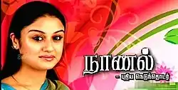 Naanal (Tamil: நாணல்) is a 2008-2009 Indian-Tamil-language soap opera starring Sonia Agarwal, Neebha and Shreekumar. It replaced Manjal Magimai and it broadcast on Kalaignar TV from 15 December 2008 to 2009 on Monday through Thursday at 19:30 (IST).[1] It will star Sonia Agarwal, who makes her debut on the small screen.[2][3]