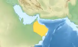 The period is poorly documented. It seems that at times the Nabhani only controlled part of the interior of the country, and at other times also ruled over the coastal lands. Oman suffered from Persian invasions, and at one point the coast was controlled by the Kingdom of Hormuz.[9] The Banu Nabhan were dominant over the other tribes until the end of the 15th century.[8] There are records of personal visits by Nabhani rulers to Ethiopia, Zanzibar, the Lamu Archipelago of what is now Kenya, and Persia.[5] The al-Nabhani dynasty of Pate Island in the Lamu Archipelago claimed descent from the Omani dynasty.[10][11] Aqueel Bin Nabhan