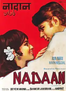 Nadaan (Hindi: नादान; translated: innocent) is a 1971 Bollywood drama film directed by Deven Verma.[1] The film stars Asha Parekh, Navin Nischal, Helen and Madan Puri.[2]