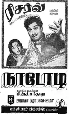 Nadodi (transl. Vagabond; pronounced [n̪aːɖoːɖi]) is a 1966 Indian Tamil-language film, produced and directed by B. R. Panthulu. The film stars M. G. Ramachandran (credited as M. G. R), B. Saroja Devi and Bharathi in her acting debut. It was released on 14 April 1966, and became a modest commercial success.