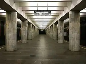 Nagatinskaya (Russian: Нагатинская) is a station of Serpukhovsko-Timiryazevskaya line of Moscow Metro. It was opened together with several other stations of the southern part of the line on 8 November 1983. It lies underneath the surface with the depth of 13.5 metres (44 ft). The passenger dynamics for the station are 54,900 per hour on entry and 57,500 on exit.