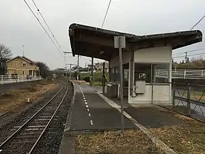The unattended station consists of one side platform serving a single track. There is a waiting room next to the platform.