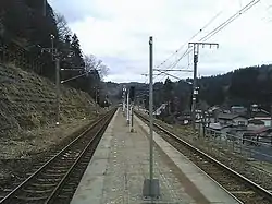 - The station is located in an isolated rural area, with few inhabitants. Niigata Prefectural Route 11 is near the station.
