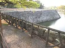 In places like the Ofukemaru and Nishinomaru Palaces the moat comes close to the castle wall. This was done to increase the defendability of the castle. This design is called the cormorant's neck because it is so long and thin. Five of these cormorant-neck shaped moats still exist throughout the castle area.