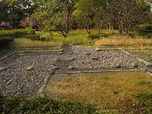Located behind the Kaya tree is the former site of the warehouses and rice granaries (米倉 komegura). These were six long-shaped buildings running parallel to the Cormorant's Neck moat. After the Pacific War the Nishinomaru Exhibit Hall was located here and was replaced with two buildings that were rebuilt in the appearance of the former warehouses to house the new exhibition space. The new Nishinomaru Okura Museum (西の丸御蔵城宝館 Nishinomaru Okura Jōhōkan[17] Nishinomaru Warehouses Castle Treasure Hall) is located where the third and fourth warehouses were and was opened on November 1, 2021 and exhibits important cultural properties such as the fusuma paintings of the Honmaru Palace.[18][19][20][21][22][23] It also showcases the history and persons of the castle.[24] Further excavations will be carried out in the future to reveal and clarify the original layout of the storehouses.[18]