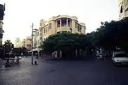 - Spector Hotel, 1914, at 18, Nahalat Binyamin, established by hotelier Elkana Spector.[11] It was used as an infirmary for Jewish victims of the 1921 Jaffa riots, afterwards becoming Tel Aviv's main Hadassah Hospital building, until a new one was built on Balfour Street.[11][3] Rami Meiri, a Tel Aviv graffiti artist, has painted the facade at the corner between Binyamin and Mohilever Street.[3]